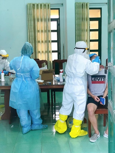 Nhân viên y tế lấy mẫu xét nghiệm tại khu cách ly