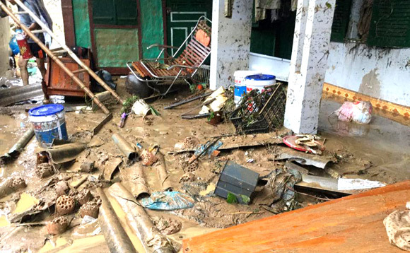 Theo thông tin ban đầu, có khoảng 100 hộ gia đình bị ảnh hưởng bởi trận lũ, trong đó nhiều hộ gia đình bị cuốn trôi toàn bộ tài sản, hoa màu. Một cửa hàng kinh doanh xe máy bị nước lũ tràn qua làm hư hỏng hơn 50 xe máy, xe đạp điện.