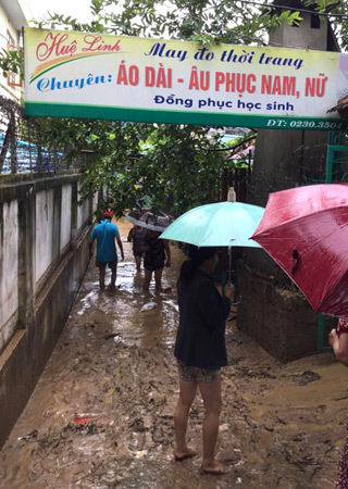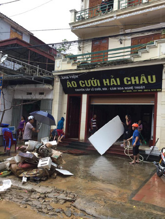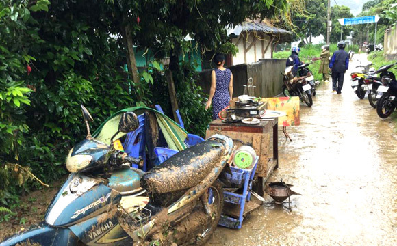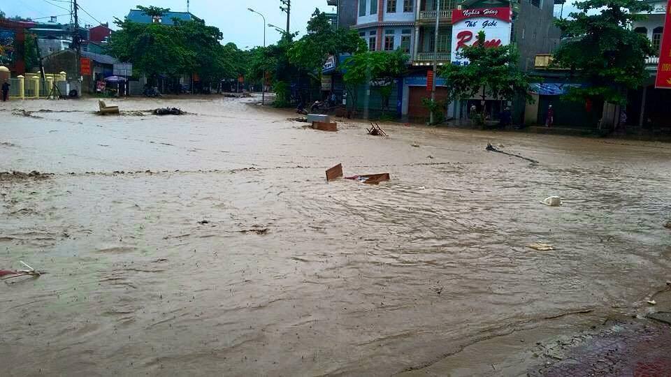 Anh Tuấn Nam chứng kiến sự việc cho biết: sau nhiều giờ mưa lớn, khi mở cửa nhà ra, tôi thấy nước cuồn cuộn trước cửa, chẳng mấy chốc cả thị trấn ngập chìm trong nước. Dòng nước hung dữ cuốn trôi hết tài sản, nhiều xe đạp điện, xe máy bị cuốn trôi...