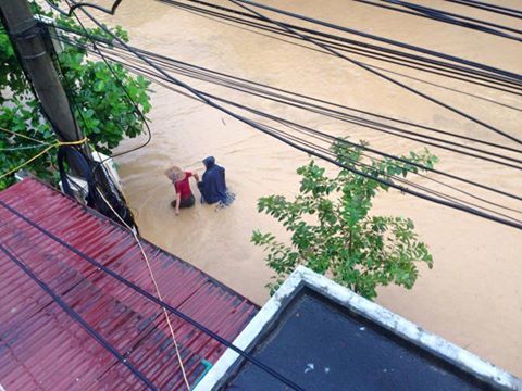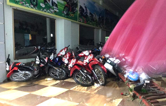 Chứng kiến cảnh nước lũ tràn xuống thị trấn nhiều người dân hốt hoảng, nhưng có không ít người lợi dụng cảnh thiên tai, cố tình lao vào dòng nước lớn để vớt xe máy, xe đạp.