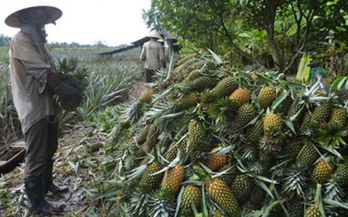 | Nông dân Đồng Tháp Mười thu hoạch dứa. Ảnh: Dân Việt |