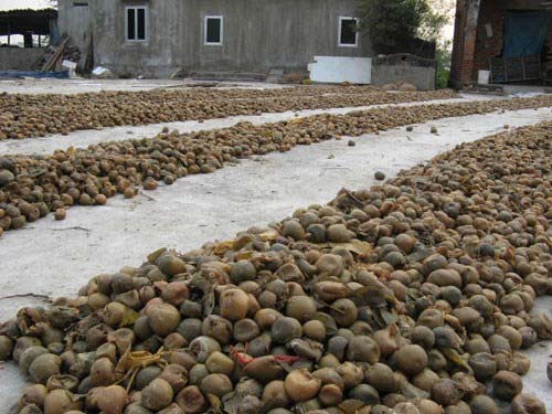 Sau khi người làm nghề “vớt” những đống quả dưới hố đem đi phơi, nhưng không hề có động tác vệ sinh hố đất hay lớp nilông trải đựng sấu, quất, chanh ủ mà chỉ phơi khô qua loa, để vài hôm lại cho ủ mẻ khác.