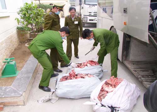 Cũng trong ngày 28/1, tại ven đường quốc lộ 1A, địa phận thị trấn Cao Lộc, Phòng Cảnh sát PCTP môi trường Công an tỉnh Lạng Sơn đã phát hiện, thu giữ 300kg nầm lợn vô chủ, đang chờ xe ô tô vận chuyển về nội địa tiêu thụ.