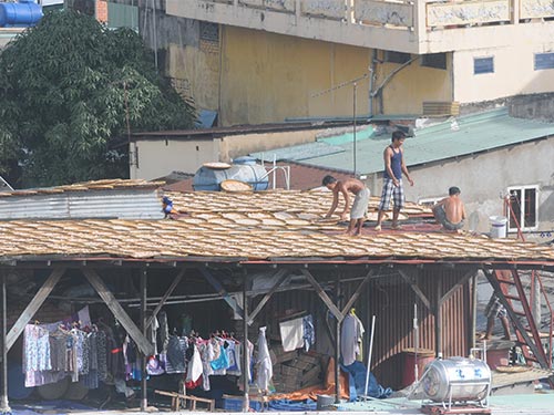 Nhiều loại mứt được phơi trên mái nhà ở khu cư xá Đường Sắt (phường 1, quận 3)