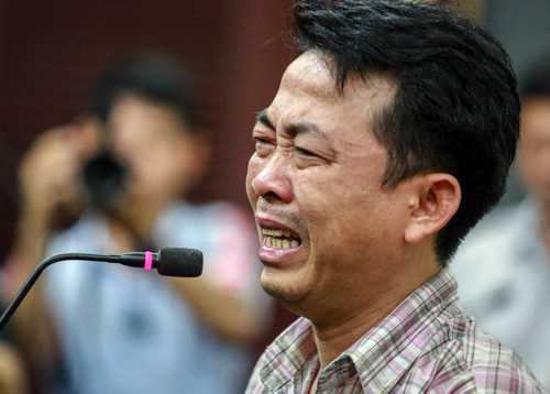 Nguyễn Minh Hùng khóc bày tỏ ăn năn, xin được tại ngoại. Ảnh: Thành Nguyễn.