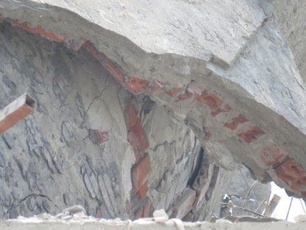 Phần thân tượng vỡ vụn, bên trong toàn gạch