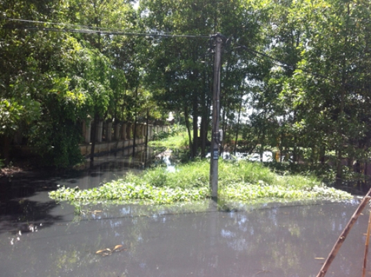 | Nước thải được nhà máy Tuấn Cường Plastic xả tràn ra bên ngoài nhà máy. |