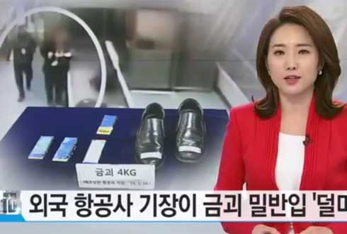 | Truyền hình Hàn Quốc đưa tin về vụ buôn lậu vàng của tiếp viên hàng không Việt Nam. |