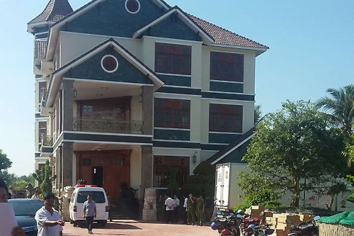 Cảnh sát phong toả căn biệt thự rộng cả nghìn m2 để điều tra.