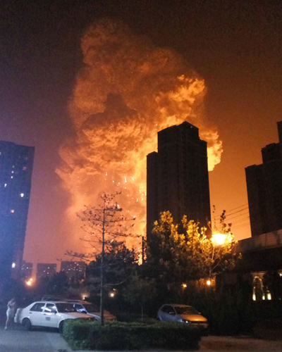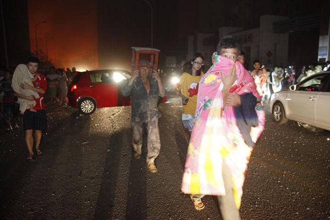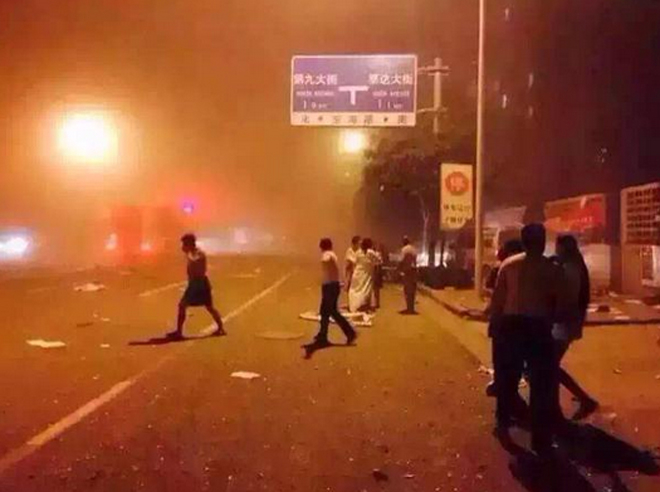 Người dân hoảng sợ chạy ra khỏi nhà khi vụ nổ hôm qua ở thành phố cảng Thiên Tân, Trung Quốc, làm cửa kính của các tòa nhà vỡ văng, container méo mó chồng đống lên nhau, ôtô cháy hàng loạt.