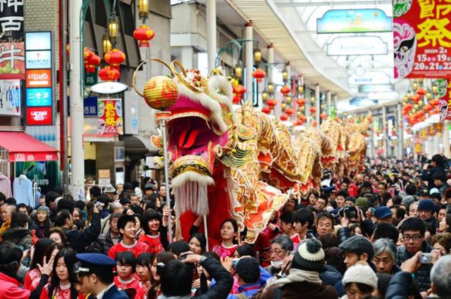 Múa rồng truyền thống ngày xuân trên đường phố thành phố Kobe, tỉnh Hyogo, Nhật - Ảnh: The Asahi Shimbun/Getty Images
