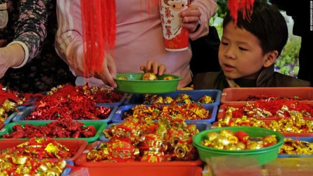 Đồ trang trí ngày Tết với sắc đỏ, vàng được bán tại một ở thành phố Đài Bắc, Đài Loan - Ảnh: CNN