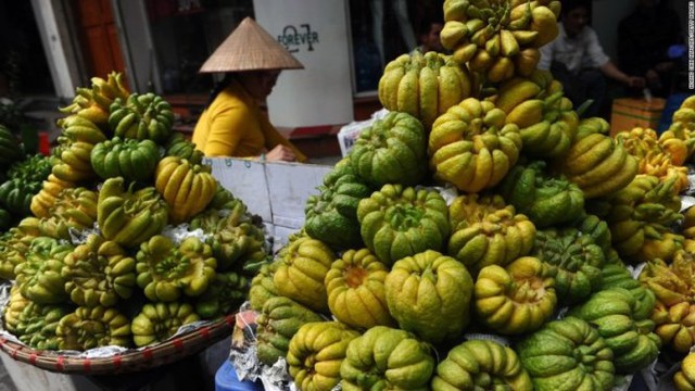 Quả Phật thủ - loại trái cây có hình dáng bàn tay Phật đang được bán hút hàng tại chợ ở Hà Nội, Việt Nam - Ảnh: CNN