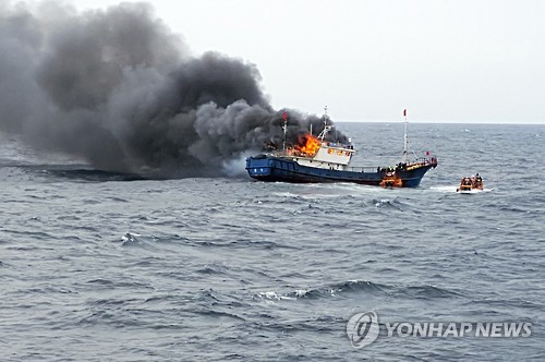 Tàu cá Trung Quốc bốc cháy ngoài khơi Hàn Quốc (Ảnh: Yonhap)