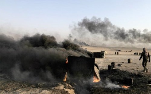 Cũng theo giới chức quân sự Mỹ, một số vụ không kích đã nhằm vào các cơ sở dầu lửa quy mô nhỏ của IS. Các cơ sở này đem lại cho IS doanh thu khoảng 2 triệu USD mỗi này - Ảnh: Reuters.