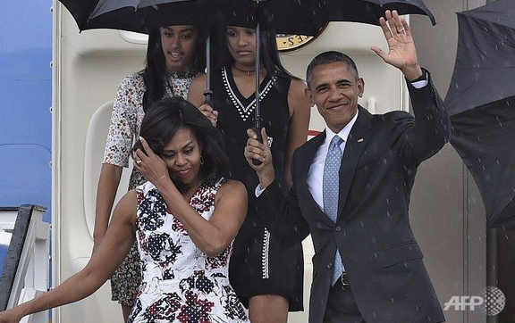 Sau khi Air Force One đáp xuống sân bay quốc tế Jose Marti ở thủ đô Havana của Cuba, bước ra khỏi chuyên cơ, ông Obama và gia đình đã được chào đón trọng thị bởi một phái đoàn do Ngoại trưởng Cuba Bruno Rodriguez dẫn đầu. Nhà ngoại giao hàng đầu của Mỹ tại Cuba, Tham tán Jeffrey DeLaurentis, cũng có mặt để đón tiếp gia đình Obama. Đệ nhất phu nhân Michelle Obama, hai con gái Sasha và Malia, và mẹ của bà Michelle Marian Robinson được tặng hoa.