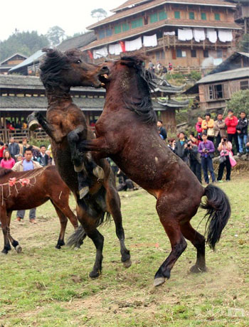 Một tộc người thiểu số ở miền nam Trung Quốc thường tổ chức lễ hội chọi ngựa truyền thống mỗi dịp Tết đến.