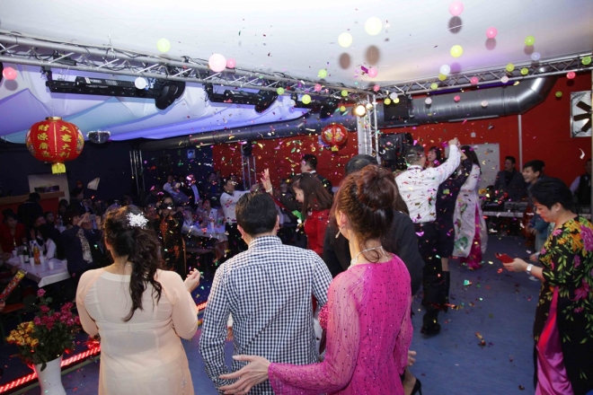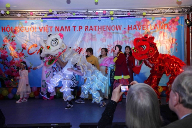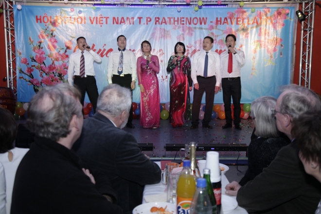 Tại thành phố Rathenow, Đức, nhiều gia đình người Việt tập trung hôm 14/2 để cùng nâng cốc, bóc bánh chưng và nghe tiếng pháo tiễn năm cũ và đón năm mới.