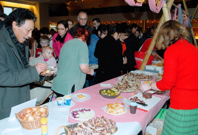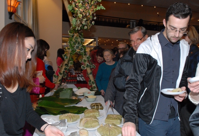 Hai bên hội trường là những nơi giới thiệu ẩm thực Việt Nam, các món ăn Tết, trình diễn cách gói bánh chưng và nem, và các món ăn Séc.