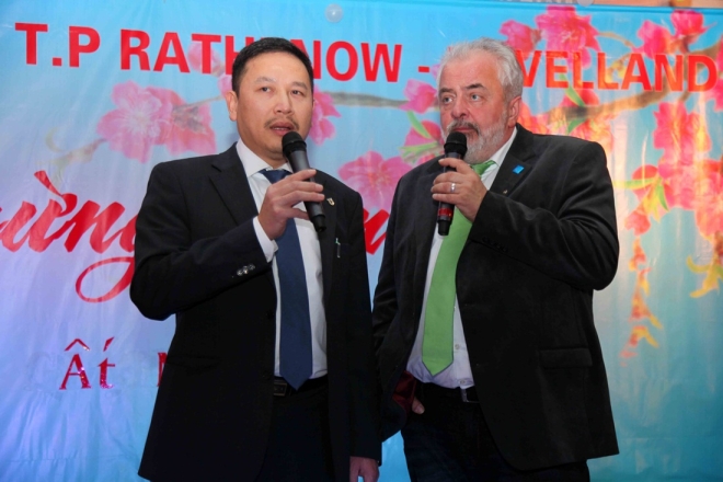 Ông Ronld Seeger (phải), Chủ tich Thành phố đến dự, ông chia sẻ "Cộng đồng người Việt rất chăm chỉ làm việc, góp phần tô điểm bộ mặt thành phố".