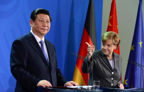 | Chủ tịch Trung Quốc Tập Cận Bình thăm Đức và châu Âu để tìm kiếm cơ hội đầu tư mới hồi tháng 4/2014. Tại đây họ cũng không quên nhắc về đường lưỡi bò tại Biển Đông |