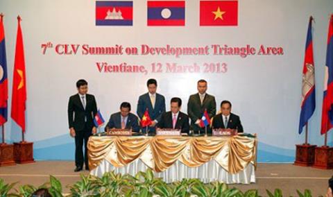 | Lãnh đạo 3 nước Việt Nam - Lào - Campuchia tại Hội nghị lần thứ 7 được tổ chức năm 2013. |