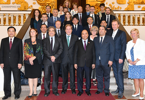 Thủ tướng Nguyễn Xuân Phúc, Bộ trưởng Nông nghiệp Nguyễn Xuân Cường tiếp đoàn Ủy ban Nghề cá Nghị viện châu Âu. Ảnh: VGP. |