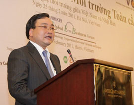 Phát biểu tại Diễn đàn, Phó Thủ tướng Hoàng Trung Hải đánh giá cao những nội dung thảo luận giữa các nhà quản lý, cộng đồng doanh nghiệp hai nước, nhất là trong bối cảnh môi trường đang trở thành thách thức lớn đối với chủ trương phát triển nhanh gắn liền với phát triển bền vững của Việt Nam cũng như việc triển khai quan hệ đối tác hợp tác toàn diện giữa Việt Nam và Nhật Bản.