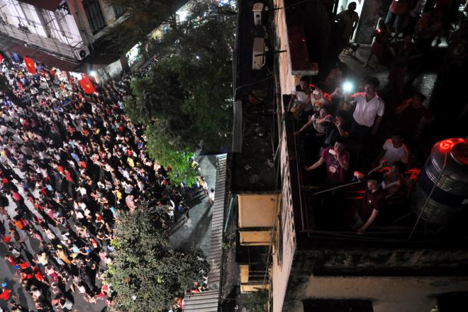 Hàng nghìn người say sưa ngắm những "bông hoa lửa" trên bầu trời, thỉnh thoảng lại ồ lên khi thấy một loạt bắn đẹp mắt. Sân thượng các ngôi nhà xung quanh Hồ Gươm trở thành địa điểm xem pháo hoa lý tưởng.