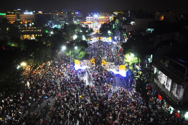 Trước giờ pháo hoa khai hoả, hàng nghìn người đã đổ về khu vực trung tâm để chọn cho mình một chỗ đứng thuận lợi. Hồ Gươm là nơi có thể cùng lúc xem pháo hoa ở hai điểm khác nhau, bởi vậy từ 20h, đường Đinh Tiên Hoàng đã không còn chỗ trống.