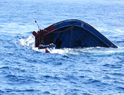 | Tàu cá của ngư dân Quảng Ngãi bị sóng đánh chìm trên biển. Ảnh:H.Danh. |