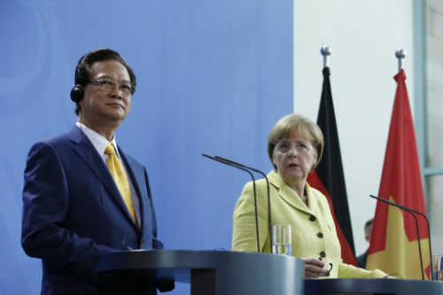 | Sau khi kết thúc chuyến thăm tại Bỉ, Thủ tướng đã lên đường đến Đức và có cuộc hội kiến với Thủ Tướng Angela Merkel. Bà Merkel cho hay Đức và các nước châu Âu sẽ tiếp tục ủng hộ việc thực hiện các biện pháp hòa bình để giải quyết vấn đề biển Đông. Ảnh: AFP |