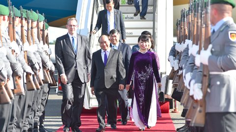 | Lễ đón Thủ tướng Nguyễn Xuân Phúc, phu nhân và đoàn tại sân bay quân sự Tegel, Berlin. Ảnh: VGP |