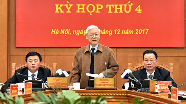 | (Hà Nội, ngày 23 tháng 12 năm 2017) Thưa các đồng chí, Hôm nay, tôi rất vui mừng đến dự Kỳ họp thứ tư Hội đồng Lý luận Trung ương nhiệm kỳ 2016 - 2021, một kỳ họp bàn chuyên sâu về chủ đề "Công tác lý luận: Thực trạng, vấn đề và giải pháp" và Tổng kết công tác năm 2017, xác định phương hướng, nhiệm vụ năm 2018 của Hội đồng. Tôi nhiệt liệt chào mừng các đồng chí thành viên Hội đồng, các đồng chí đại biểu đã đến dự Kỳ họp quan trọng này. Chúng ta vừa được nghe các báo cáo của Hội đồng và một số tham luận có nhiều nội dung phong phú, sâu sắc. Sau đây tôi xin lưu ý, nhấn mạnh, gợi mở thêm một vài vấn đề để các đồng chí cùng thảo luận. Thưa các đồng chí, Đại hội XII của Đảng đã khẳng định, ba mươi năm đổi mới là một giai đoạn lịch sử quan trọng trong sự nghiệp xây dựng và bảo vệ Tổ quốc, đánh dấu sự trưởng thành về mọi mặt của Đảng, Nhà nước và nhân dân ta. Đổi mới mang tầm vóc lịch sử và ý nghĩa cách mạng, là quá trình cải biến sâu sắc, toàn diện, triệt để, là sự nghiệp cách mạng to lớn của toàn Đảng, toàn dân, toàn quân vì mục tiêu "dân giàu, nước mạnh, dân chủ, công bằng, văn minh". Đất nước ta đã đạt được những thành tựu to lớn, có ý nghĩa lịch sử, khẳng định đường lối đổi mới của Đảng ta là đúng đắn, sáng tạo; con đường đi lên chủ nghĩa xã hội ở nước ta là phù hợp với thực tiễn của Việt Nam và xu thế phát triển của thế giới. Thành tựu của hơn 30 năm đổi mới vừa qua có sự đóng góp xứng đáng của đội ngũ cán bộ lý luận. Tuy nhiên, trong công cuộc đổi mới nói chung và công tác lý luận thời kỳ đổi mới nói riêng cũng còn những hạn chế, yếu kém cần phải tập trung giải quyết, khắc phục để tiếp tục đưa đất nước phát triển nhanh và bền vững hơn. Đại hội XII đã nêu rõ, chất lượng và hiệu quả của công tác lý luận chưa cao. Công tác tổng kết thực tiễn, nghiên cứu lý luận còn bất cập, chưa làm rõ được một số vấn đề đặt ra trong quá trình đổi mới để định hướng trong thực tiễn, cung cấp cơ sở khoa học cho việc xây dựng và hoàn thiện đường lối của Đảng, chính sách và pháp luật của Nhà nước. Lý luận về chủ nghĩa xã hội và con đường đi lên chủ nghĩa xã hội còn một số vấn đề cần phải qua tổng kết thực tiễn, nghiên cứu lý luận để tiếp tục làm rõ. Thực tiễn công cuộc đổi mới đang đặt ra và đòi hỏi chúng ta phải tiếp tục đổi mới mạnh mẽ hơn nữa về tư duy lý luận, về công tác lý luận. Chúng ta đều biết, lý luận có vai trò cực kỳ quan trọng trong đời sống xã hội. V.I.Lênin đã chỉ rõ: Không có lý luận cách mạng thì không thể có phong trào cách mạng; chỉ đảng nào có được lý luận tiên phong hướng dẫn thì mới làm tròn vai trò của người chiến sĩ tiên phong. Chủ tịch Hồ Chí Minh cũng nhiều lần khẳng định: Không có lý luận thì như người nhắm mắt mà đi. Tuy nhiên, lý luận không phải là một cái gì khô khan, cứng nhắc; trái lại, nó đầy tính sáng tạo, sinh động, luôn luôn được thực tiễn phong phú, muôn màu, muôn vẻ bổ sung để không ngừng phát triển, hoàn thiện. Thấm nhuần sâu sắc những di huấn của chủ nghĩa Mác - Lênin, tư tưởng Hồ Chí Minh, Đại hội XII của Đảng một lần nữa khẳng định: tiếp tục đổi mới mạnh mẽ tư duy, vận dụng sáng tạo, phát triển chủ nghĩa Mác - Lênin, tư tưởng Hồ Chí Minh, kiên định mục tiêu độc lập dân tộc và chủ nghĩa xã hội; tăng cường tổng kết thực tiễn, nghiên cứu lý luận, dự báo chính xác và kịp thời có chủ trương, chính sách xử lý hiệu quả những vấn đề mới nảy sinh trong thực tiễn, giải quyết tốt các mối quan hệ lớn phản ánh quy luật đổi mới và phát triển ở nước ta. Thưa các đồng chí, Đại hội XII của Đảng nêu rõ, thời kỳ mới đòi hỏi phải phát triển đất nước toàn diện, đồng bộ hơn về chính trị, kinh tế, văn hoá, xã hội, quốc phòng, an ninh, đối ngoại, trong đó phát triển kinh tế - xã hội là trung tâm, xây dựng Đảng là then chốt; xây dựng văn hoá, con người là nền tảng tinh thần; tăng cường quốc phòng, an ninh là trọng yếu, thường xuyên. Từ sau Đại hội, bám sát tư tưởng chỉ đạo, những định hướng lớn, những nhiệm vụ trọng tâm được xác định trong Văn kiện Đại hội, Ban Chấp hành Trung ương, Bộ Chính trị, Ban Bí thư đã tập trung lãnh đạo, chỉ đạo quyết liệt. Trung ương đã ban hành một số nghị quyết quan trọng về xây dựng, chỉnh đốn Đảng trong sạch, vững mạnh về chính trị, tư tưởng, tổ chức, đạo đức; về tiếp tục đổi mới, sắp xếp hệ thống chính trị tinh gọn, hoạt động hiệu lực, hiệu quả; về phát triển kinh tế thị trường định hướng xã hội chủ nghĩa, nâng cao năng suất lao động, chất lượng, hiệu quả, sức cạnh tranh của nền kinh tế trong bối cảnh đất nước hội nhập quốc tế 