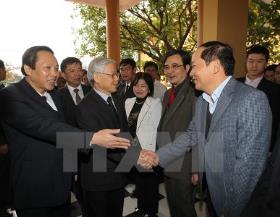 | Tổng Bí thư Nguyễn Phú Trọng gặp gỡ cán bộ , nhân dân xã nông thôn mới Lộc Thủy, huyện Lệ Thủy. Ảnh: TTXVN |