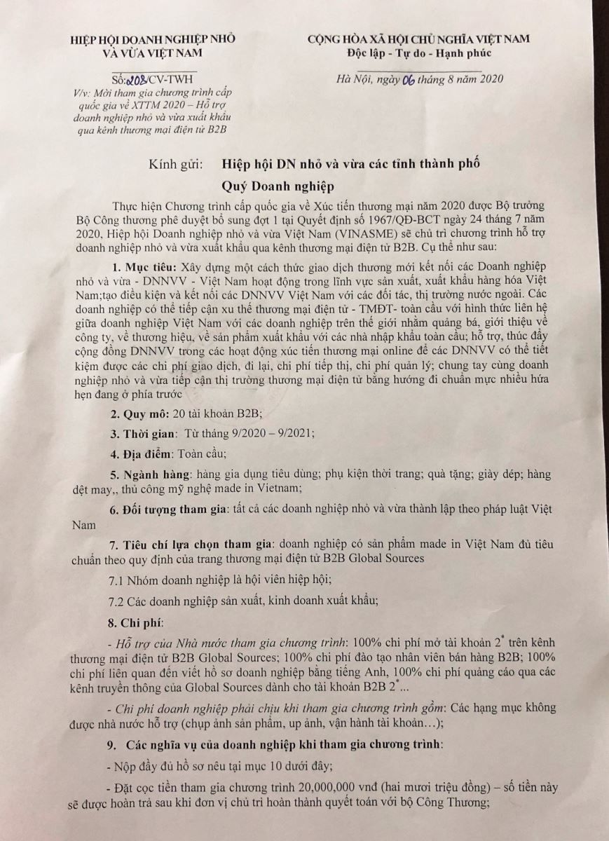 Mời tham gia chương trình cấp quốc gia về XTTM 2020 – Hỗ trợ doanh nghiệp nhỏ và vừa xuất khẩu qua kênh thương mại điện tử B2B