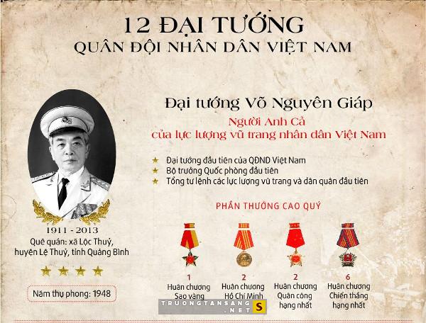 Chúng tôi xin gửi đến bạn đọc Infographic về 12 Đại tướng của Quân đội Nhân dân Việt Nam qua các thời kỳ: