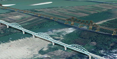 | Đồ họa cầu đường sắt xây mới bên cạnh cầu Long Biên. Ảnh: Đ.L |