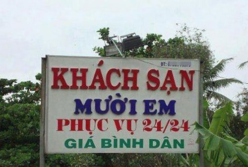 Nhiều người đi đường có khi sẽ bật cười nghiêng ngả khi bất chợt nhìn thấy những biển quảng cáo nhà nghỉ, khách sạn độc chỉ có ở Việt Nam.