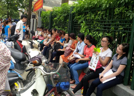 Nắng cũng như mưa, những gương mặt trẻ ngồi chờ la liệt ngoài vệ đường, trên bãi cỏ của dải phân cách, trên vỉa hè chờ đến lượt nộp hồ sơ. Có người đi lại mất 3-4 ngày mới đưa hồ sơ qua cửa.